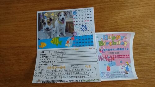 ジャックラッセルテリアは毎日が換毛期のように毛がぬけます。掃除機の中はほとんど犬毛。 基本シャンプーは家でやりますが、2匹となると風呂場は毛だらけ、排水口は1匹洗う度に掃除。 割引ハガキとサロンからのお手紙 お誕生日に犬サロンから誕生日カード兼…