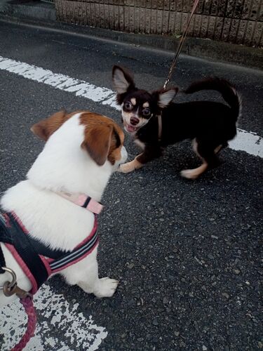 チワワの5カ月の男の子の寅ちゃん。 (多分この字よねぇ。名前の由来がパパがフーテンの寅さんのファンだって言ってたから。) 毎朝私がウォーキングからの帰り道会う事が多いのですが、先日はおひめのあさんぽで会えました。 たまたまスマホを持っていたの…