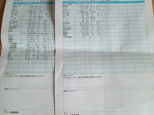 先月の狂犬病ワクチンの際に行った健診結果をききにクラーク動物病院へ。 み〜はスタンダードプラン、ゆめはライトプランの健診。 スタンダードとライトの違いはライトの脂質 肝、腎、膵機能に加えて、電解質と貧血が加わるといった感じ。 病院へはゆめだけ…